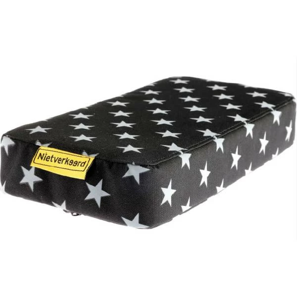 Niet Verkeerd zit kussen met stars print, waterdicht kussen voor de bagagedrager, montage op drager dmv Ty-rips, materiaal Polyester 210D, lengte 32cm