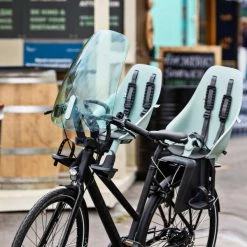 Als je een Urban Iki voorzitje hebt, kan het windscherm in een paar seconden op het bevestigingssysteem van fietsstoeltje geplaatst worden.